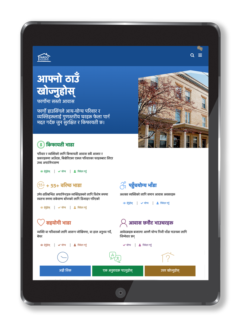Dozens of languages are spoken in Fargo. Research identified limited English proficiency as a leading factor preventing community members from securing safe, decent places to live.